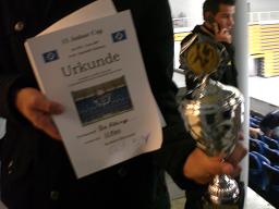 Wir sind damit bei unserer ersten Turnierteilnahme unter die ersten 16 von 33 Mannschaften gekommen. Bei der Siegerehrung wurden wir als 13. geehrt (errechnet aus den Vorrunden-Ergebnissen und dem Achtelfinal-Ergebnis). Wir sind damit zufrieden, weil wir noch nie zuvor zusammengespielt hatten und trotzdem gute Spiele gezeigt haben und quasi ungeschlagen (Siebenmeterschießen ausgenommen) geblieben sind. Ein bisschen Enttäuschung schwang trotzdem mit, weil wir in der Gruppenphase alle Spiele hätten gewinnen können (und damit einen vielleicht leichteren Gegner im Achtelfinale gehabt hätten) und auch im Achtelfinale nur unglücklich ausgeschieden sind. Im Finale konnte sich "Hamburger Sternschnuppen" mit 2:0 gegen "Die Göttlichen" durchsetzen. Im Spiel um Platz Drei schlugen die "Outsiders" die anhand des Turnierverlaufs von vielen als Favorit angesehenen "Moin Moin" mit 3:1. Das Turnier hat viel Spaß gemacht, auch weil alle Gegner sehr fair und sportlich waren. Allgemein herrschte eine sehr gute Atmosphäre. Bei zwei Spielen gab es jedoch eine so genannte Rudelbildung" mit Handgreiflichkeiten, die aber schnell gestoppt werden konnte. Beteiligt daran war eine in die politisch rechte Szene einzuordnende Mannschaft, die auch durch weiteres Verhalten wie lautstarkes Beschweren bei Schiedsrichtern und Turnierleitung auffiel. Bei der Siegerehrung wurde von der Turnierleitung erwähnt, dass es faschistische Äußerungen gegeben haben soll und das man sich in solchen Fällen umgehend an die Turnierleitung zu wenden habe, weil Faschismus beim HSV nichts zu suchen habe. Alle Anwesenden reagierten mit Beifall, was zeigt, dass HSV-Fans nicht pauschal als Nazis bezeichnet werden können, sondern dass dies wie überall sonst auch nur Einzelfälle sind. Gewonnen haben wir einen Pokal, eine Urkunde und Karten für das Testspiel im Januar gegen Midtjylland - leider nur so viele wie gemeldete Spieler. Bedanken müssen wir uns beim HSV-Fanprojekt", welches das Turnier organisiert und finanziert hat. Außerdem bedanken wir uns beim Gymnasium Farmsen, welches uns die Schultrikots geliehen hat. Zudem noch ein herzlichen Dank an die Zwei die sich auf den Weg gemacht haben uns als Zuschauer zu unterstützen. Der Auftritt beim 13. Indoor-Cup der HSV-Fans lässt auf weitere (noch) erfolgreiche(re) Turnierteilnahmen der Elblinge hoffen. Ergebnis- + Tabellenübersicht, sowie Siegernamen folgen noch. Autor: Benjamin Böhme | |