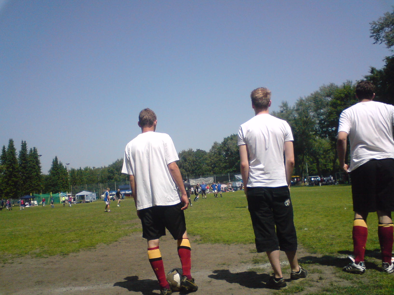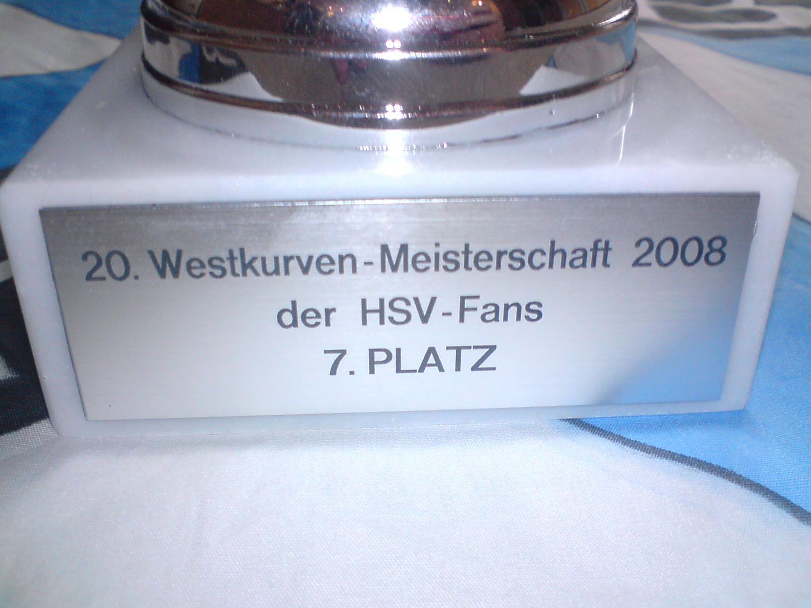 Am 31.05.2008 fanden die 20. Westkurvenmeisterschaften statt. Mit dabei waren 62 HSV-Fanclubs aus ganz Deutschland. Die WKM ist gleichzeitig die Qualifikation zur nationalen Fanclub-Meisterschaft. Die Elblinge traten zum ersten Mal in den neuen Trikots + Stutzen auf. Ein beeindruckendes Gesamtbild! Ein Spiel dauerte 10 Minuten, die Mannschaft bestand aus 6 Spielern. Leider hatten unsere kompletten Auswechselspieler kurzfristig abgesagt, so das wir das einzigste Team ohne Auswechler waren. Was die Mission Finale von Anfang an erschwerte. Nach einer langen Verzögerung zum Turnierstart hatten wir endlich unser erstes Gruppenspiel, gegen den 4. des letzten Jahres, "Die Bohnen". Dank eines Tores von Tobias Bartels gelang ein perfekter Turnierstart. Auch das zweite Spiel wurde 1:0 gewonnen. Diesmal war Fabian Müller der Torschütze. Jedoch musste Patrick Prager eine Zeitstrafe (2 Minuten) auf sich nehmen um den, frei auf das Tor zu laufenden, Stürmer festzuhalten. Im letzten Gruppenspiel, gegen die SG Dithmarschen/Nordfriesland, würde uns ein Unentschieden langen, um als Gruppenerster ins 16tl-Finale einzuziehen. Schnell geang Martin Bochinski der Fühhrungstreffer. Kurz vor Abpfiff musste unser guter Torwart Philip Idzikowski leider noch den Ausgleich hinnehmen. Dennoch zogen wir ungeschlagen in die nächste Runde ein. | |||||||||||||||||||||||||||||||||||||||||||||||||||||||||||||||||||||||||||||||||||