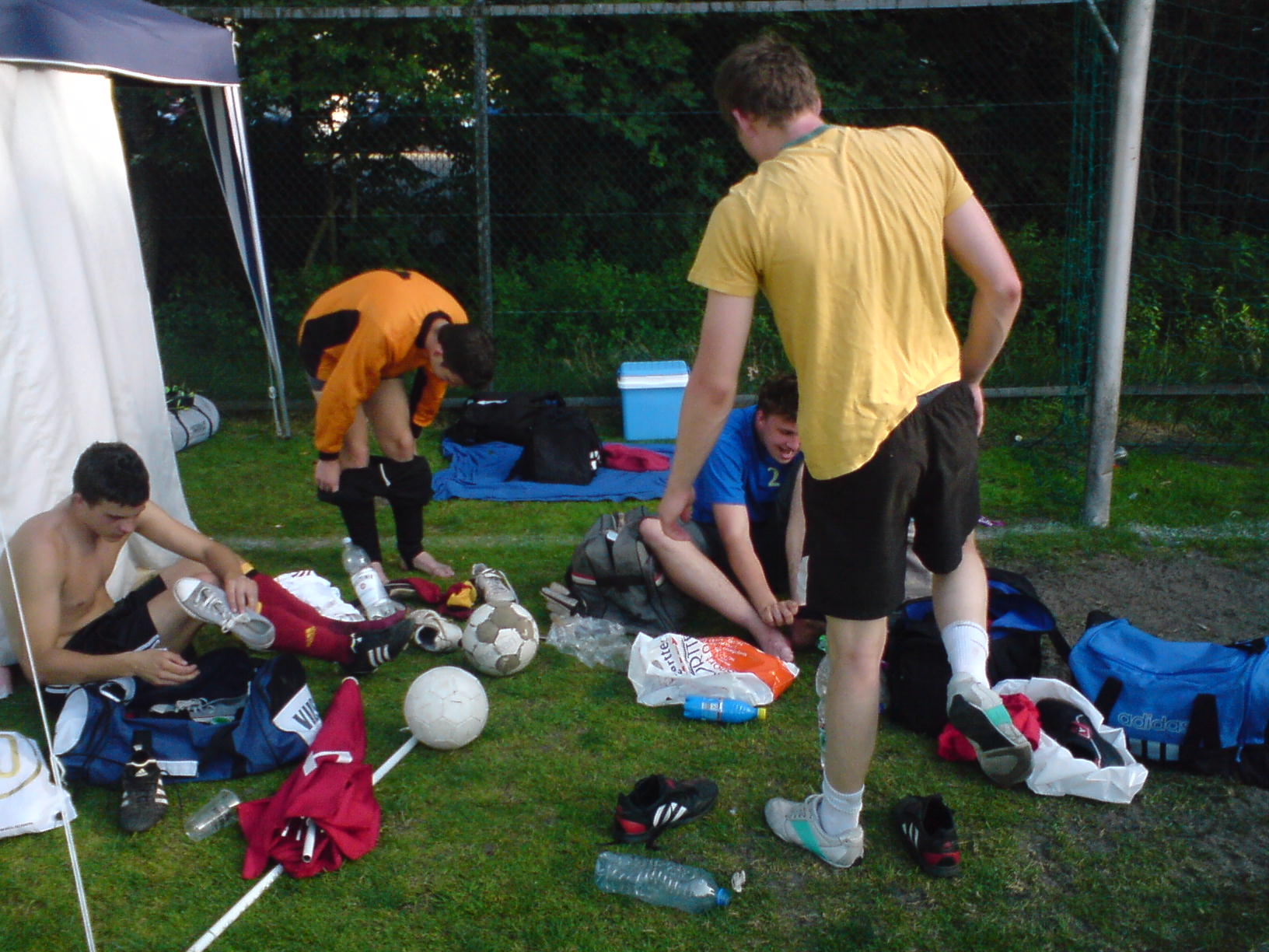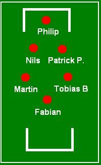 Einzelkritik: Tor: Philip Idzikowski: Guter und sicherer Rückhalt. Mit nur einem Gegentor aus dem Spiel heraus, kann man nicht besser machen. Im Achtelfinale zum Held, durch den gehaltenen entscheidenden Elfmeter, geworden. Abwehr: Patrick Prager: Sicherer Verteidiger, hat keinen Gegner vorbei gelassen. Gute Kondition. Aber Elfmeterschießen sollte er kräftig üben! Nur 1 von 3 Tore vom Punkt. Abwehr: Nils Hartfelder: Sicherer Verteidiger, ist immer dazwischen gegangen, ab und zu zuviel Abstand zum Gegenspieler. Sicher den Elfmeter verwandelt. Mittelfeld: Martin Bochinski: Die Offensivkraft auf dem Feld. Viele Impulse nach Vorn, des öfteren gut durchgesetzt und den Sturm in Position gebracht. Zudem mit einem wichtigen Tor aus dem Spiel heraus und 2 von 3 Elfmetertreffern. Mittelfeld: Tobias Bartels: Guter Flügelspieler mit viel Laufeinsatz und dem ersten Tor des Turniers. Sturm: Fabian Müller: Viele Torchancen aber leider wenig Tore. Wer allein vorm leeren Tor das Ding nicht rein macht sollte sich nicht Stürmer nennen. Etwas Konditionsschwach. Ein hervorragender Elfmeterschütze mit 3 von 3 sicher verwandelten Schüssen. | |||||||||||||||||||||||||||||||||||||||||||||||||||||||||||||||||||||||||||||||||||