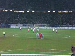 Es gibt keinen Verein in Europa, der den HSV schlagen kann" , eine in den letzten Monaten häufig skandierte Textzeile nach Europapokalspielen. Für die Spiele in UI- und UEFA-Cup dieses Jahr sicher zutreffend. Nach dem souveränen Einzug in die Gruppenphase des UEFA-Pokals konnte man sich dort den Gruppensieg sichern. Das 1:1 gegen den FC Basel machte diesen ersten Erfolg perfekt. Nach den Siegen gegen Brann Bergen, Stades Rennes und Dynamo Zagreb reichte in diesem Spiel der eine Punkt, um den ersten Tabellenplatz gegen Basel zu behaupten. Das Spiel startete gleich mit einer Doppelchance für den HSV. Nach einem van der Vaart Freistoß kam Nigel de Jong aus kurzer Distanz zum Kopfball, scheiterte allerdings am Keeper des FC Basel. Der Abpraller flog Bastian Reinhardt direkt vor die Füße, er schoss den Torwart aber aus kürzester Distanz an - er ist eben kein Stürmer. Es folgten weitere (teilweise hochkarätige) Torchancen durch van der Vaart und Ivica Olic, aber der Ball wollte einfach nicht ins Tor. Der Führungstreffer wäre in der ersten Halbzeit mehr als verdient gewesen, zumal Basel kaum eine Torchance produzierte. Außerdem wurden dem HSV zwei Strafstöße verwehrt, beide Male wurde Olic im Strafraum elfmeterreif zu Fall gebracht. Zu Beginn der zweiten Halbzeit flog der Spieler Zanni von Basel mit gelb/rot vom Platz, nachdem er erneut ein taktisches Foul (gegen Kompany) begangen hatte. Es schien, als sollte die Sache dadurch noch eindeutiger verlaufen. In den folgenden Minuten kam der HSV nicht so gut in Gang wie in der ersten Hälfte und es kam wie es kommen musste: In der 58. Spielminute wurde der Spielverlauf auf den Kopf gestellt, indem Ergic das 1:0 für den FC Basel erzielte. Entstanden war dieser Treffer nach einer unglücklichen Abwehraktion, so dass Basel auf der rechten Seite in Ballbesitz kam. Trochowski und Mathijsen konnten nicht entscheidend stören, so dass der Ball in die Mitte gespielt werden konnte. Der Ball passierte einige Spieler, bis er dem Torschützen vor die Füße fiel, welcher Rost keine Abwehrchance ließ und sicher einschob. In den folgenden Minuten kamen keine zwingenden Aktionen zustande. In der 72. Minute brachte Huub Stevens Romeo Castelen für den rotgefährdeten und wesentlich defensiver ausgerichteten Kompany (der auf der 6" wieder nicht vollständig überzeugen konnte) ins Spiel. Dieser Wechsel zahlte sich eine Minute später aus. Ein schnell ausgeführter Freistoß von van der Vaart auf den rechts postierten Castelen leitete den Ausgleich ein. Von Castelen kam der Ball in die Mitte auf Ivica Olic, der ihn mit dem etwas schwächeren rechten Fuß ins Tor hämmerte. Bis zum Schlusspfiff konnten keine richtigen Torchancen mehr herausgespielt werden. Das Umschalten von Defensive auf Offensive war zu langsam. Es wurde nicht schnell genug nachgerückt. Außerdem wurden häufig lieber lange Bälle in die Spitze geschlagen als ein Kombinationsspiel aufzuziehen. Aber es sei den Spielern nach 29 Pflichtspielen in der Hinrunde verziehen. Die Winterpause ist jetzt aber dringend nötig, man merkt den Spielern an, dass sie eine Pause brauchen. Leider wartet ab Januar auf unsere afrikanischen Nationalspieler (Atouba, Demel, Benjamin, Zidan) die zusätzliche Belastung des Afrika-Cups, wodurch sie uns auch zu Beginn der Rückrunde fehlen werden. Der Support war, wie man es von Europapokalspielen schon kennt, im Vergleich zur Bundesliga sehr mäßig. Auf Grund der Auflage der UEFA, dass es keine Stehplätze geben darf, stehen im A-Rang viel weniger Leute als üblich. Hinzu kommt, dass die Karten im freien Verkauf für alle erhältlich sind und dadurch viele Eventfans" in der Nordkurve stehen, die ihren Mund nicht aufmachen. Außer ein paar überzeugenden Wechselgesängen zwischen A/B- und C-Rang und einigen Hüpfeinlagen (bei 1°C auch nötig, um sich warm zu halten) kam kaum etwas zustande. Sogar die Jungs von Chosen Few Hamburg" (kurz CFHH), welche sich 90 Minuten die Kehle wund schreien und singen, wirkten im Vergleich zu anderen Auftritten etwas lahm. Aber ohne sie ginge supportmäßig leider gar nichts in der Nordkurve. Also auch den Fans tut die bevorstehende Winterpause wahrscheinlich gut, um mit neuer Motivation und neuem Durchhaltevermögen in die Rückrunde zu gehen. Durch den Gruppensieg konnten wir uns die (vermeintlich?) einfachere Aufgabe in der nächsten Runde gegen einen Gruppendritten (die Auslosung brachte uns den FC Zürich als Gegner) sichern. Als Zweiter hätte uns ein Absteiger" aus der Champions League erwartet . Aber auch dies wäre lösbar, denn es gibt keinen Verein in Europa, der den HSV schlagen kann", und so wird hoffentlich noch lange Europapokal, Europapokal, Europapokal, Eu-ro-pa-pokal" durch den Volkspark schallen. Autor: Benjamin Böhme | |